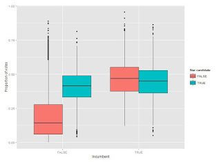 - For all 366 candidates across the three elections, we identify two things: are they an incumbent, and are they a “star” candidate, by which we mean would they be generally known outside of their riding? This yields 64 candidate-year incumbents (i.e., an individual could be an incumbent in all three elections) and 29 candidate-year stars.