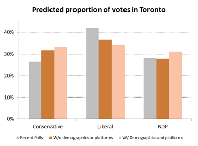 In a new paper, we discuss what influence multiple factors, such as “leader likeability”, incumbency, “star” status, demographics and policy platforms, may have on voting outcomes, and use these results to predict the upcoming federal election in Toronto ridings.